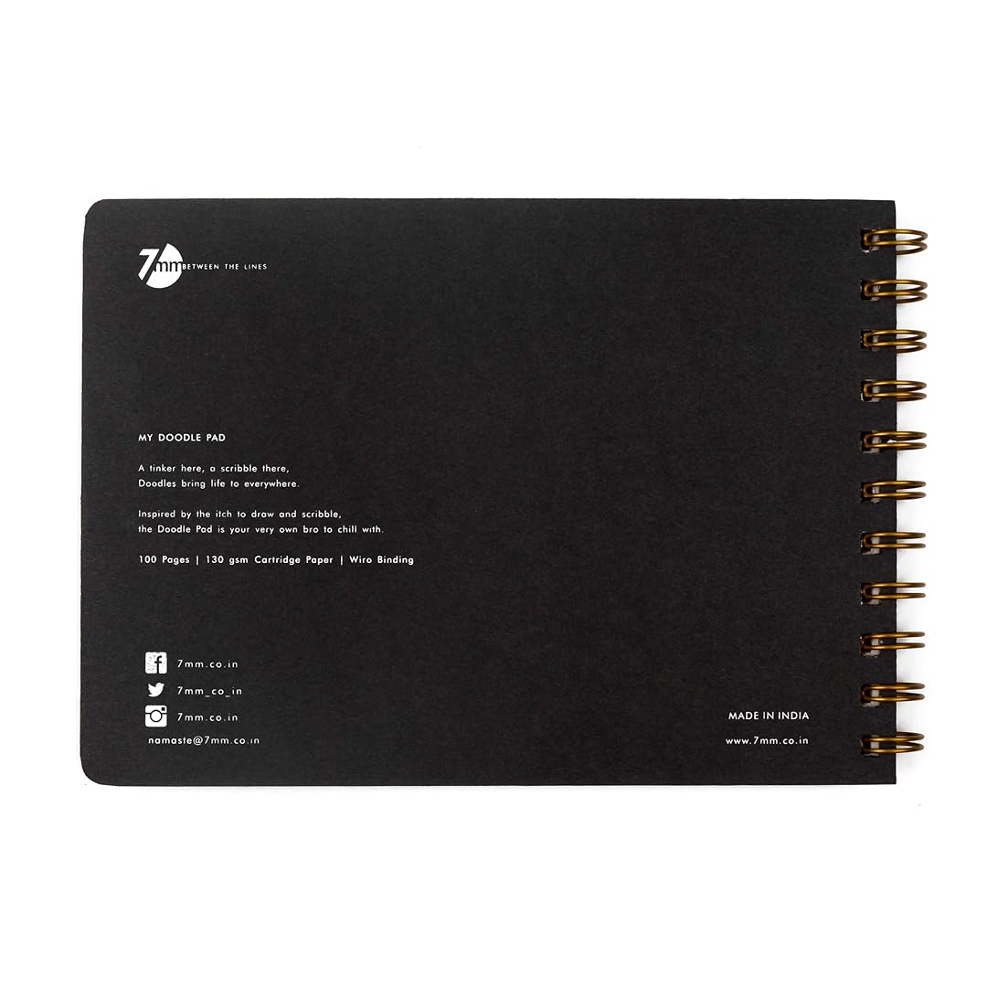 Fuel your artistic expression with the 7mm Between the Lines Doodle Pad – a compact yet spacious creative companion designed for artists, thinkers, and dreamers alike. Crafted with 100 blank perforated pages of premium 130 GSM natural shade cartridge paper, this sketchbook delivers a smooth, high-quality surface perfect for sketching, coloring, and painting. Whether you’re an illustrator, a doodler, or a note-taker, this pad ensures your ideas flow effortlessly onto paper. Bound with an elegant rose gold wiro, this notebook not only adds a sophisticated charm but also provides sturdy support, allowing for easy flipping and a comfortable drawing experience. The high-quality board cover, featuring an artistic doodled print and rounded corners, offers durability with a stylish edge, making it an aesthetic yet functional addition to your stationery collection. Designed to cater to the needs of professionals and hobbyists alike, the 7mm Between the Lines Doodle Pad is more than just a sketchbook—it’s an invitation to explore, create, and bring your imagination to life. Perfectly sized at 14.5 x 20 cm, it fits effortlessly into your bag, making it ideal for on-the-go creativity. Crafted with precision and care in India, this premium-quality pad reflects the perfect blend of craftsmanship, innovation, and artistic freedom.
