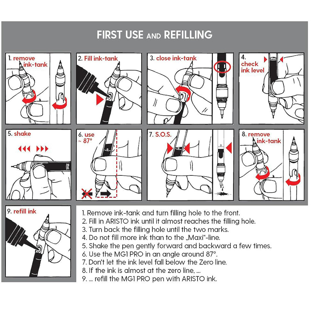 mg1 Drawing Ink / 23ml The ARISTO Indian ink convinces by high opacity, very good light-resistance and adhesion. The ink is easy-flowing and insusceptible to finger prints on the drawing surface. It is waterproof, resistant to lead-eraser, reproducible und fast drying.