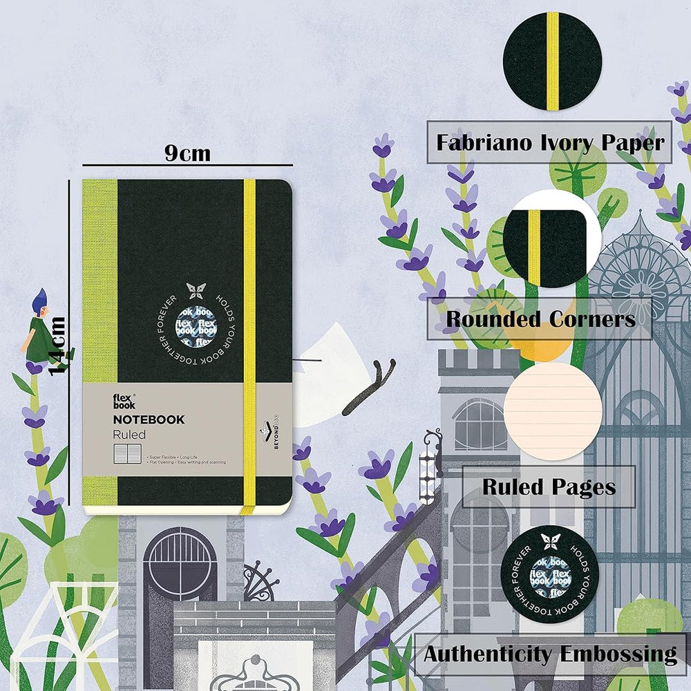 Flexbooks are lie-flat notebooks whose covers are not only flexible but durable, so they'll withstand being opened flat and folded back as many times as you care to do so. The innovative binding means that the pages are seamless, giving greater versatility when it comes to writing and sketching.