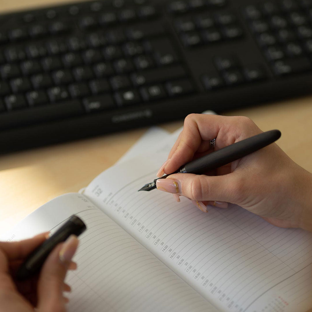 A black steel spring #5 is used, which blends harmoniously with the dark ebony design. This nib with writing strength M (medium) enables soft, clean writing without scratching and stands for a long service life and a fluid writing experience.