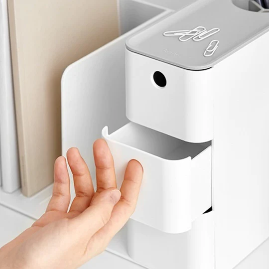 [Charming] Practical bookshelf, 3 drawers for storing various small items, convenient pen holder function on the top of the drawer, tray function for storing small items, convenient to carry