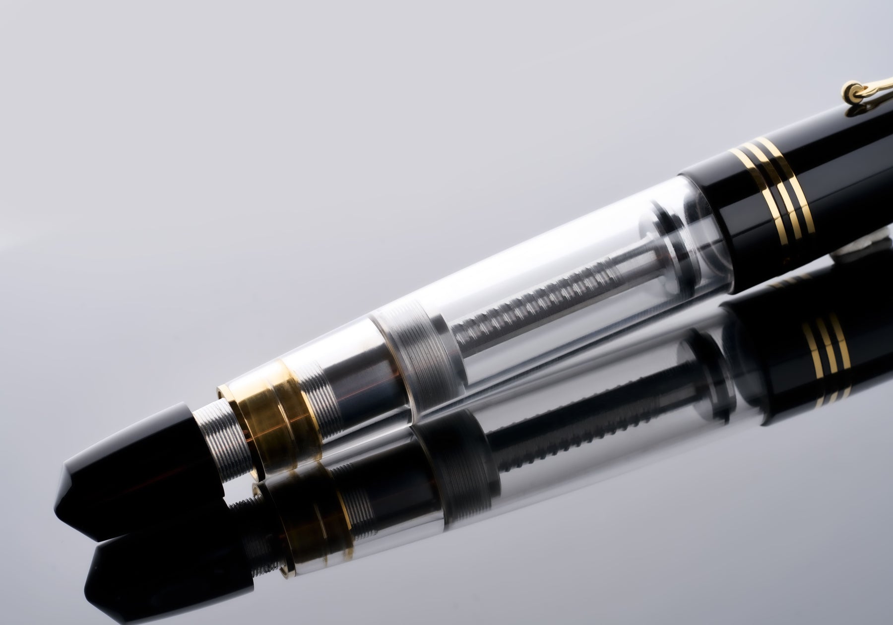 Demonstrator: “A work of engineering art” – This fountain pen hides nothing: its transparent barrel, turned from a solid bar and made perfectly polished and transparent by hand, reveals every detail of the refined internal mechanism, celebrating the perfect harmony between form and function. The other components are made of special ebonite, hand turned from solid bar; limited edition, only 188 pieces worldwide.