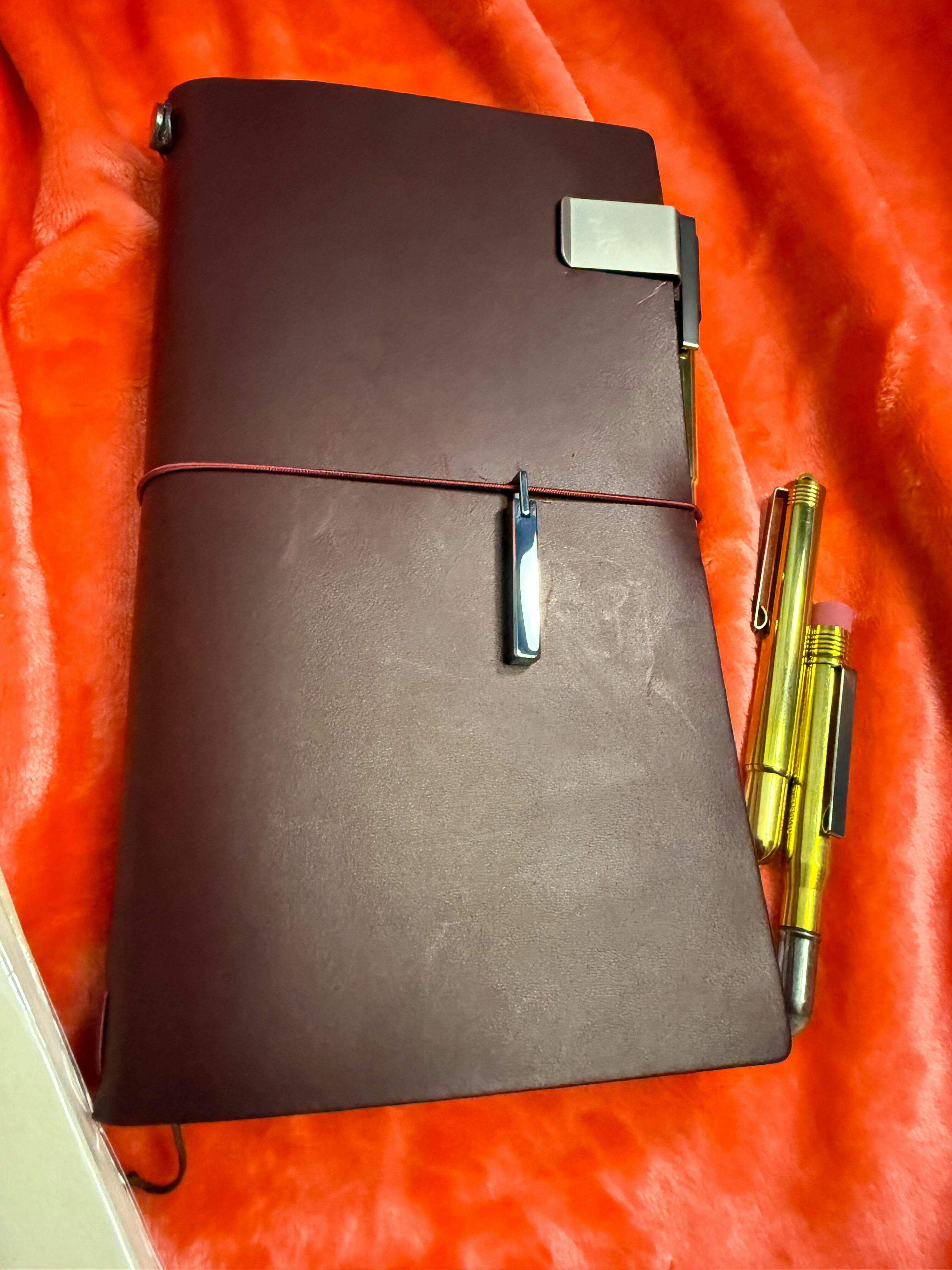 A TRAVELER'S notebook created under the theme of LOVE AND TRIP. The leather cover is made of deep red, burgundy-like leather. The color red in the tricolor is said to signify friendship, and red roses symbolize love. Red is associated with life and passion, and is a color that energizes us to begin a new journey. The LOVE AND TRIP logo is engraved on the back.
